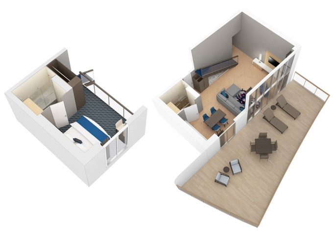 TL - Star Loft Suite 67 m² + balkón 38 m². 2-podlažný apartmán. 17. paluba. Max 4 osoby. Výhody Royal Suite Star Class. 12 042 € 4 014 € za osobu